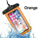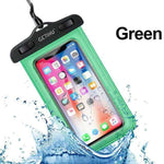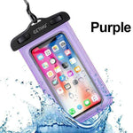 Waterproof Phone Bag for your smartphones. This Waterproof phone pouch will keep your phone dry in 32 ft of water and shield against mud, dust, or even snow. Simple snap and lock mechanism seal pouch securely to protect your phone, while the neck strap offers convenient carrying. High-clarity, Ultra-sensitive PVC offers seamless use of your phone's touchscreen and camera-even underwater.