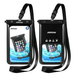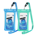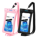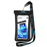 Waterproof Phone Bag for your smartphones. This Waterproof phone pouch will keep your phone dry in 32 ft of water and shield against mud, dust, or even snow. Simple snap and lock mechanism seal pouch securely to protect your phone, while the neck strap offers convenient carrying. High-clarity, Ultra-sensitive PVC offers seamless use of your phone's touchscreen and camera-even underwater.